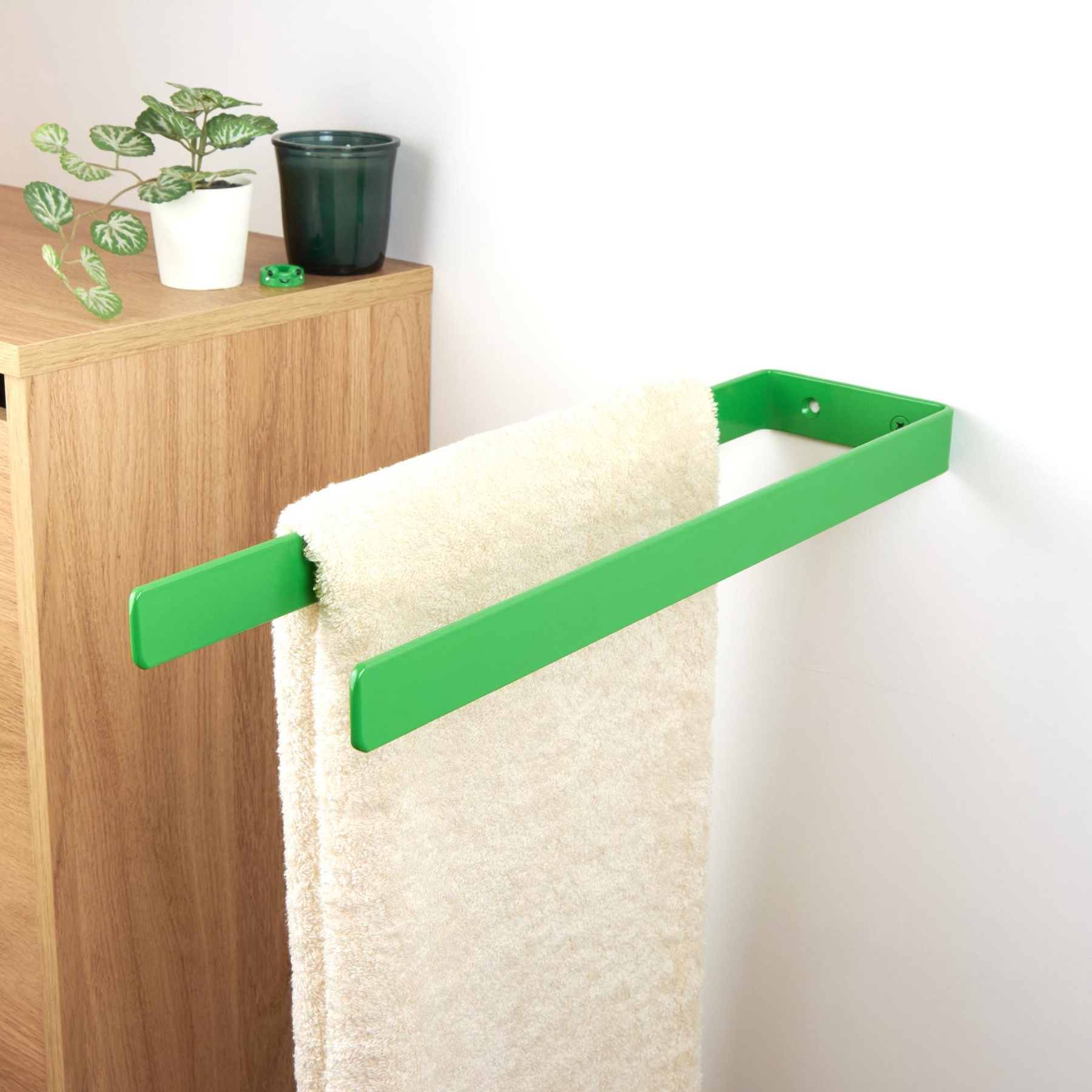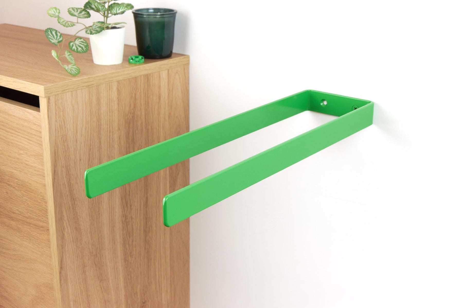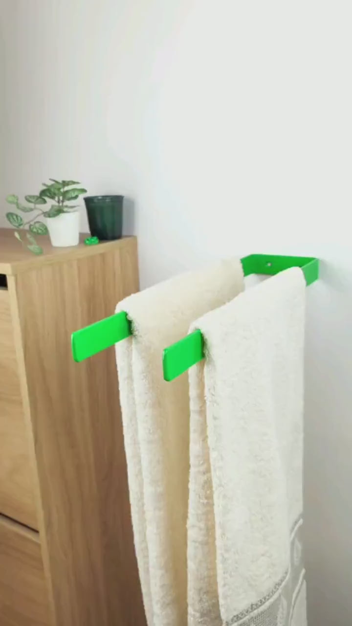 Keep your bathroom neat and organized with this durable double towel hanger! The color of the product in the pictures is Green Gloss.