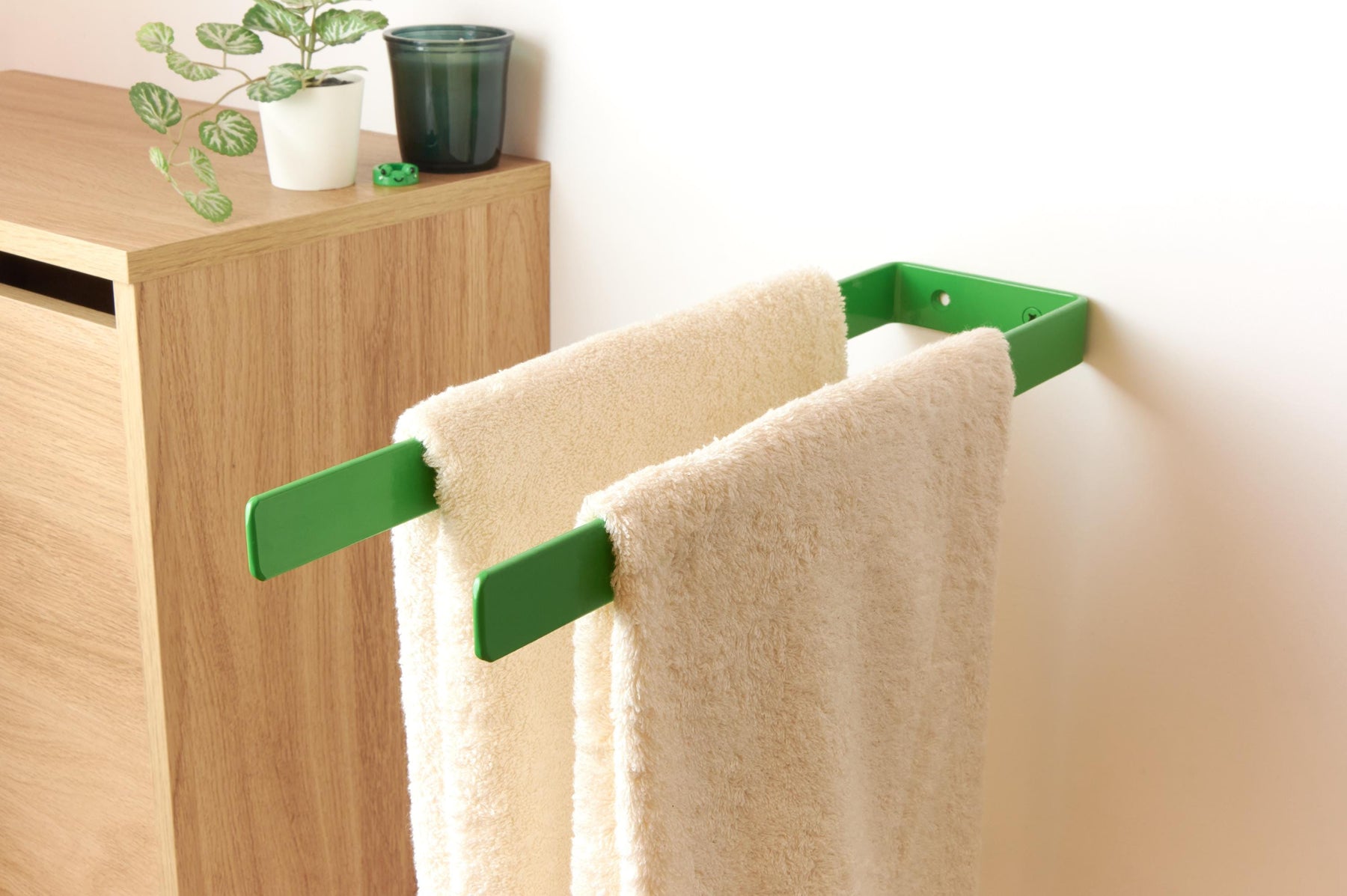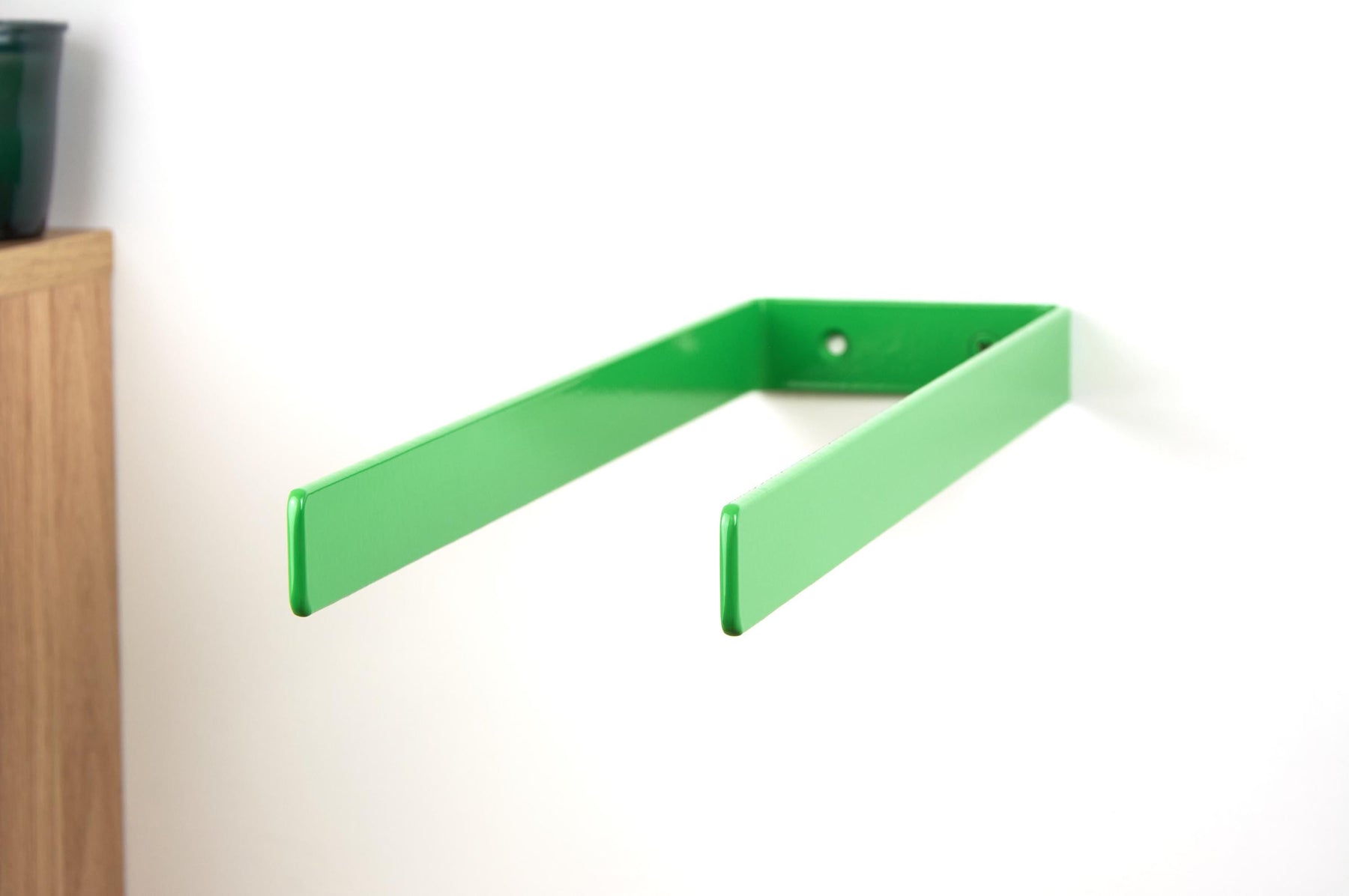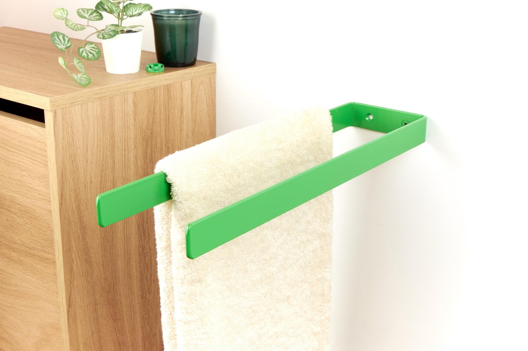 Keep your bathroom neat and organized with this durable double towel hanger! The color of the product in the pictures is Green Gloss.