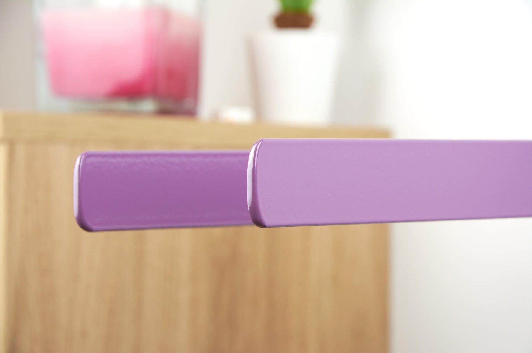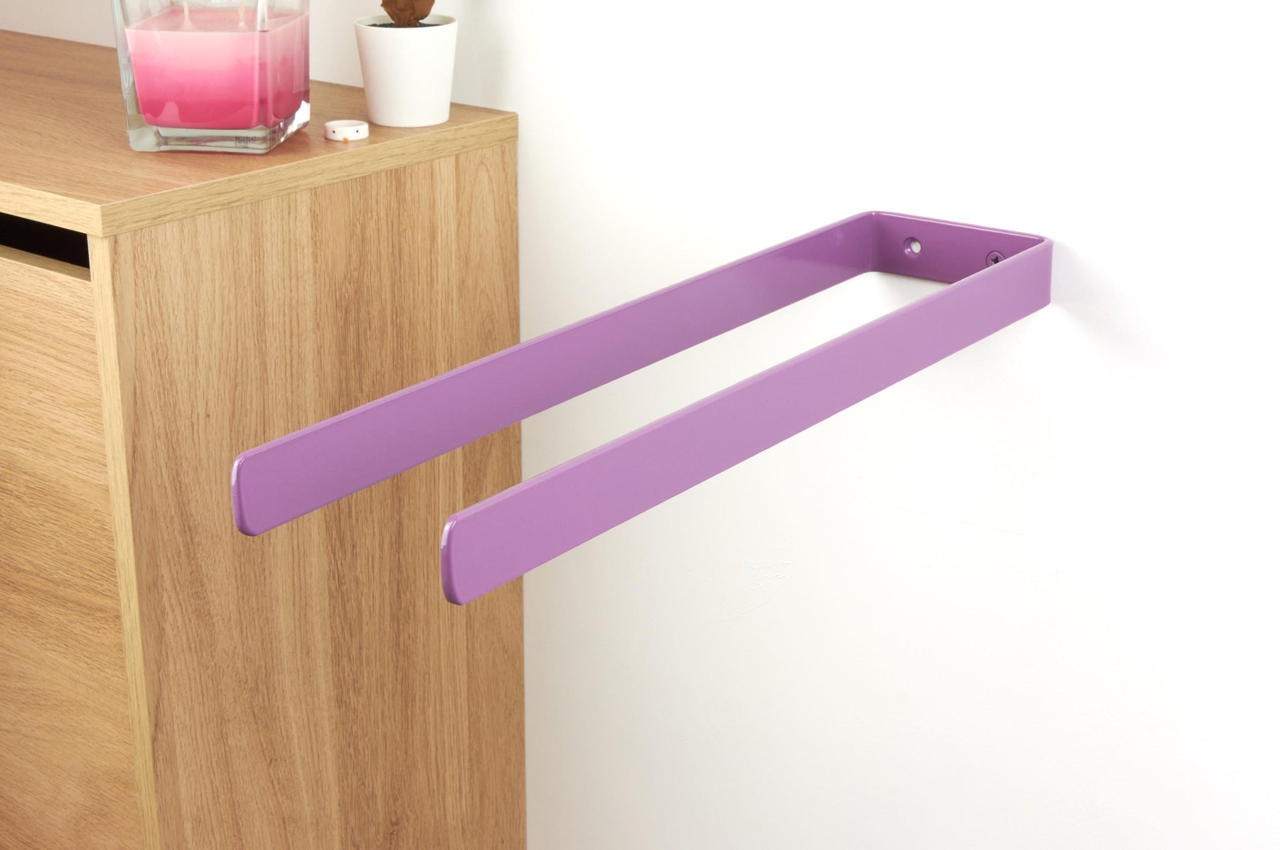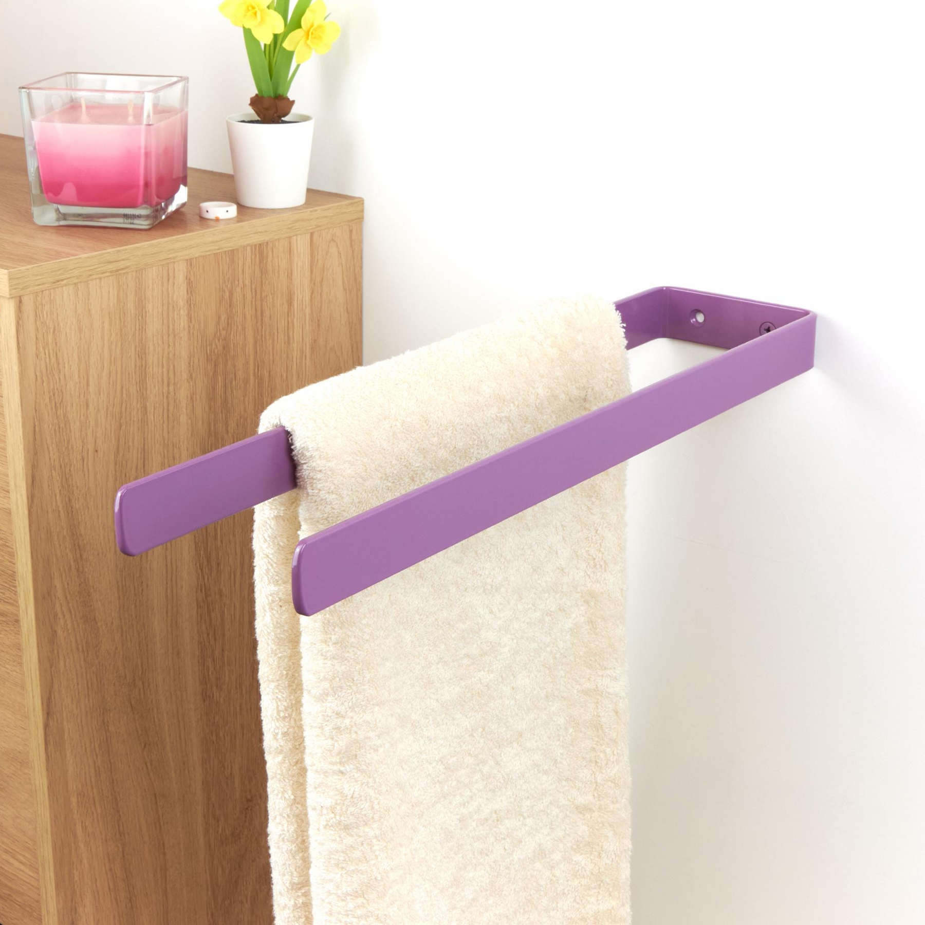 This double vibrant metal towel rack with a sleek minimalist design offers a functional dual towel rack solution for modern bathrooms! The color of the product in the pictures is Violet.
