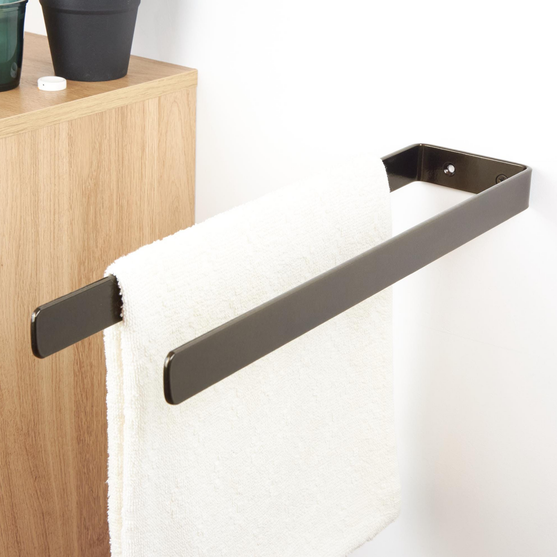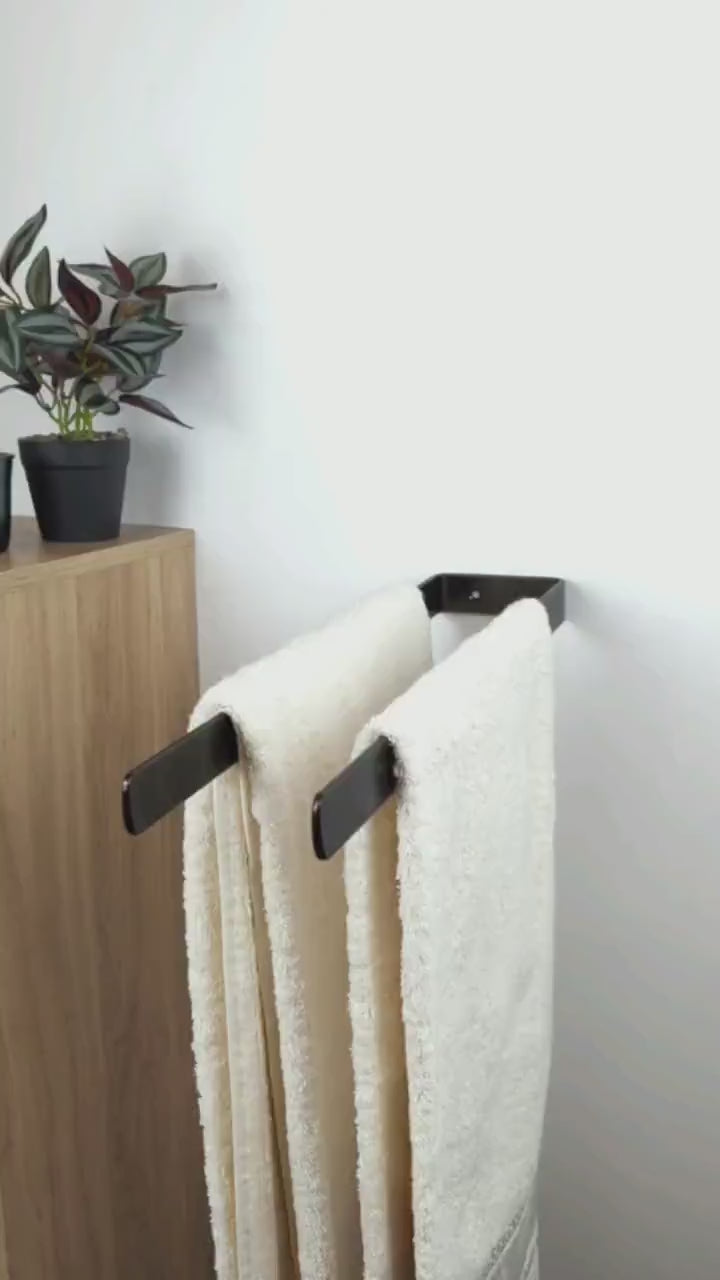 Upgrade your bathroom with this dual towel holder! This wall-mounted towel rack combines functionality and style, making it a perfect modern bathroom organizer for any space. The color of the product in the pictures is Oil Rubbed Bronze.