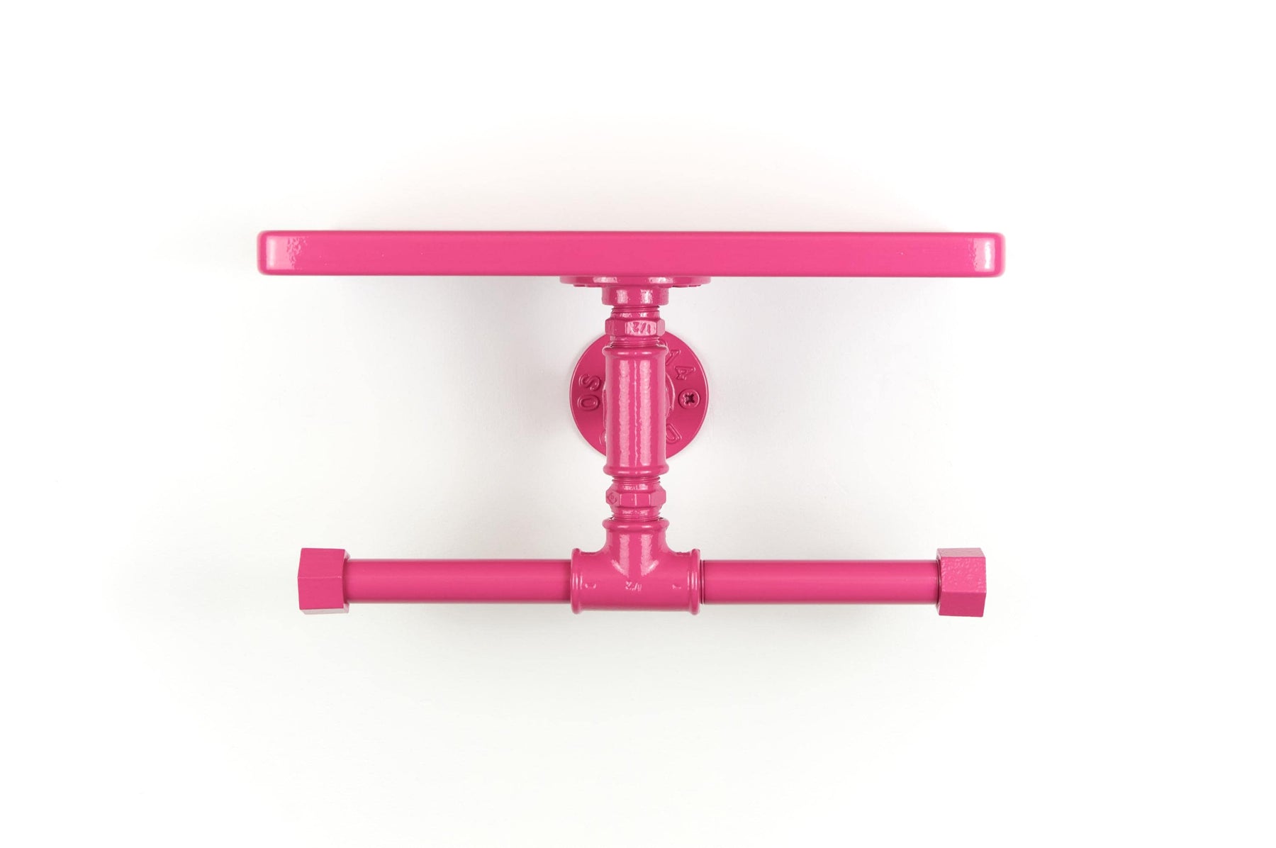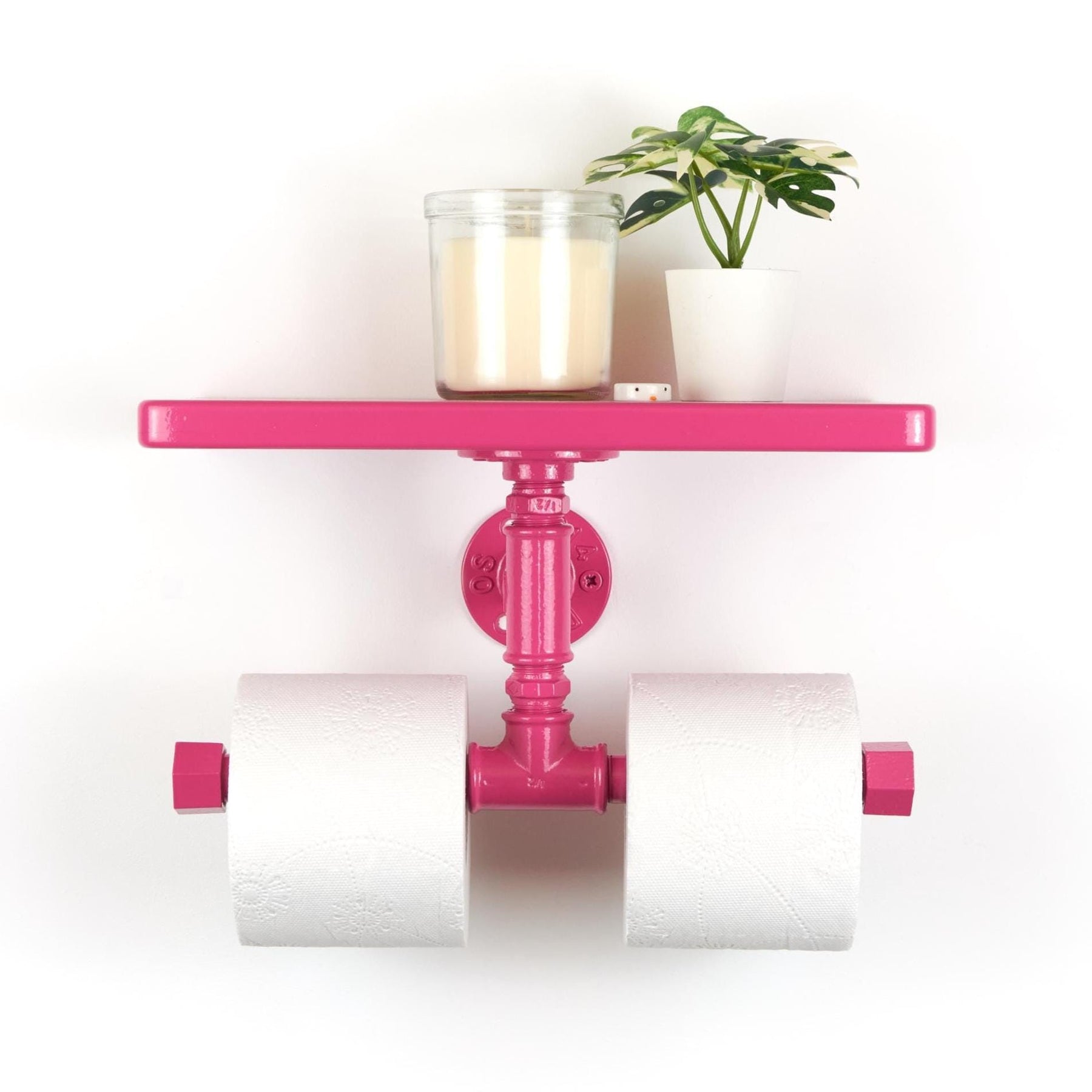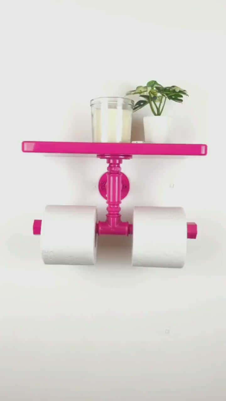 Bring both color and practicality to your bathroom with a vibrant double toilet paper holder with shelf, a functional storage solution that makes a perfect gift for a new home! Color shown in pictures - Hot Pink.