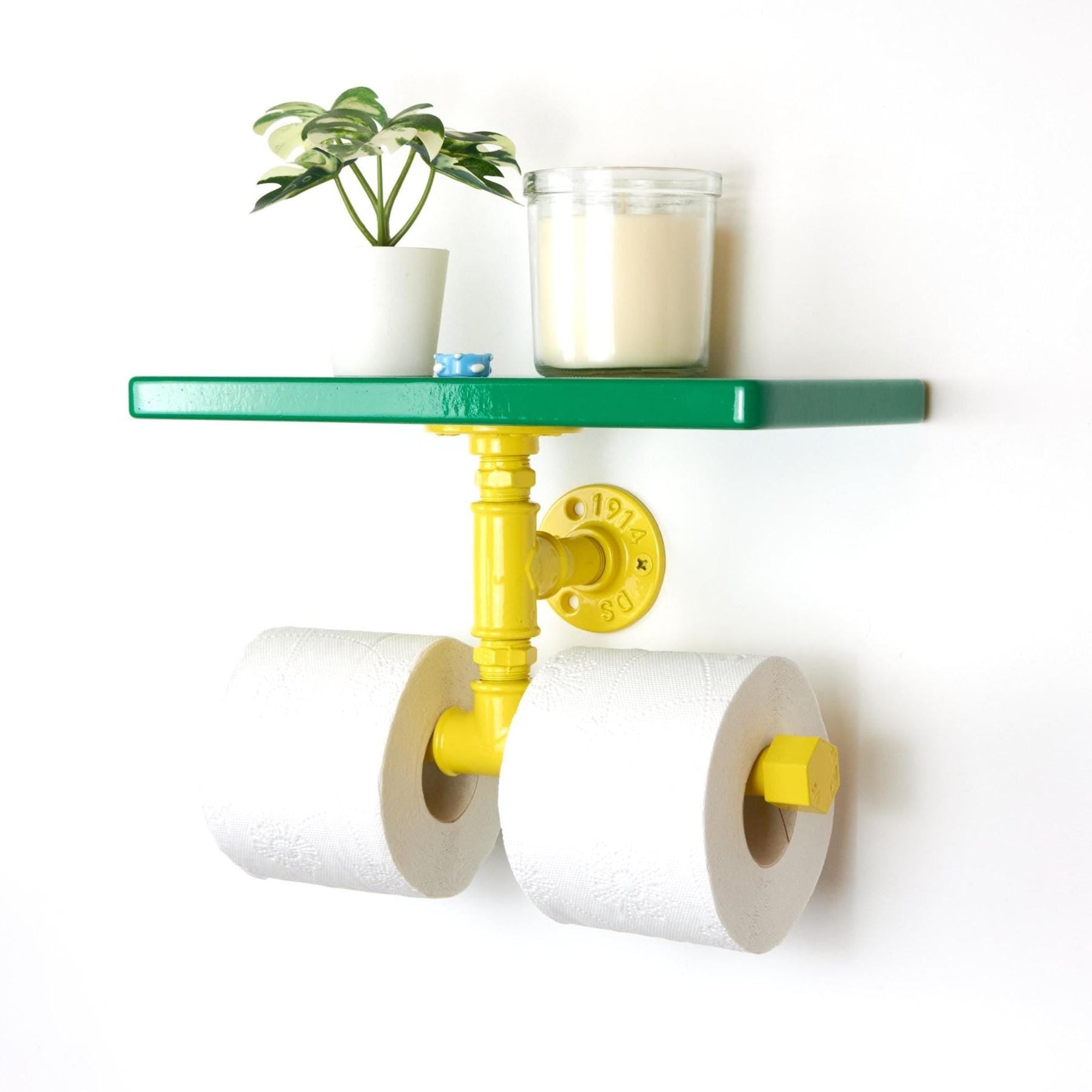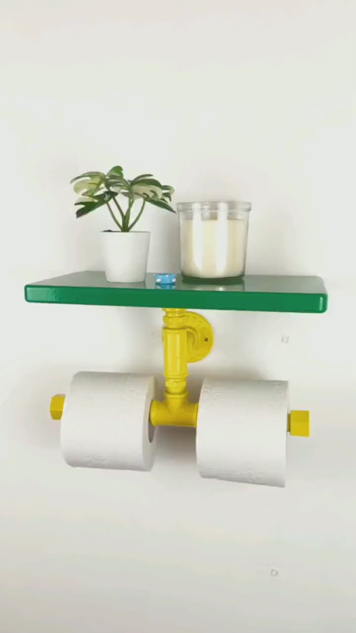 Add a pop of color and convenience to your space with a vibrant double toilet paper holder with shelf, a stylish and functional bathroom organizer designed for easy access and modern home upgrades!