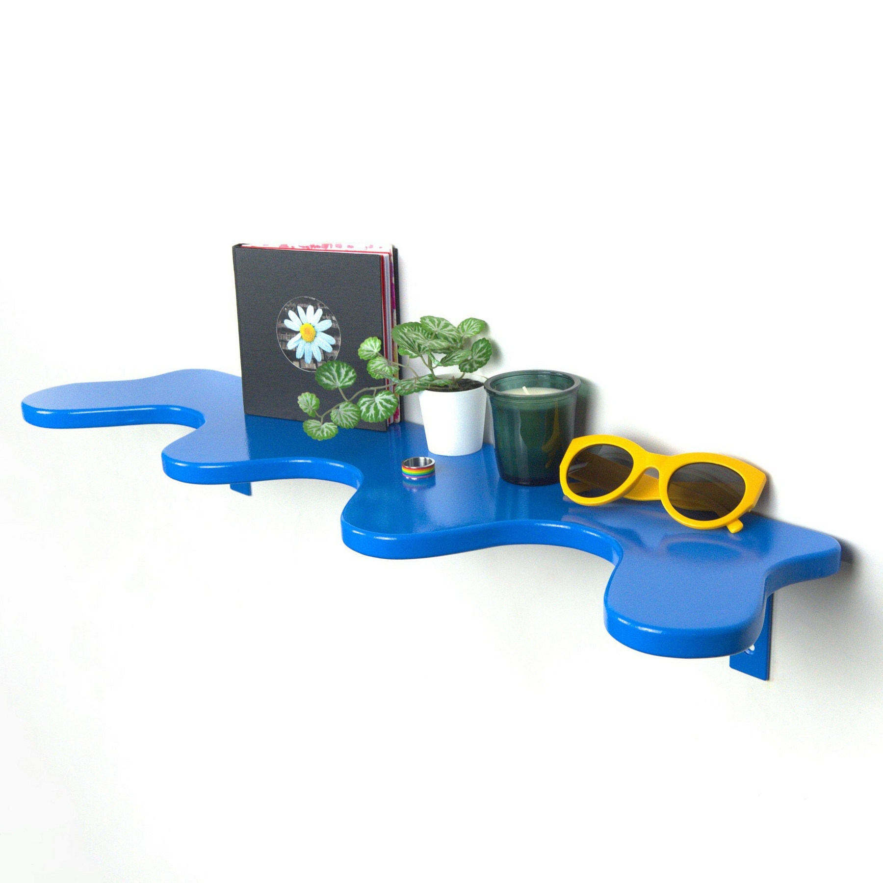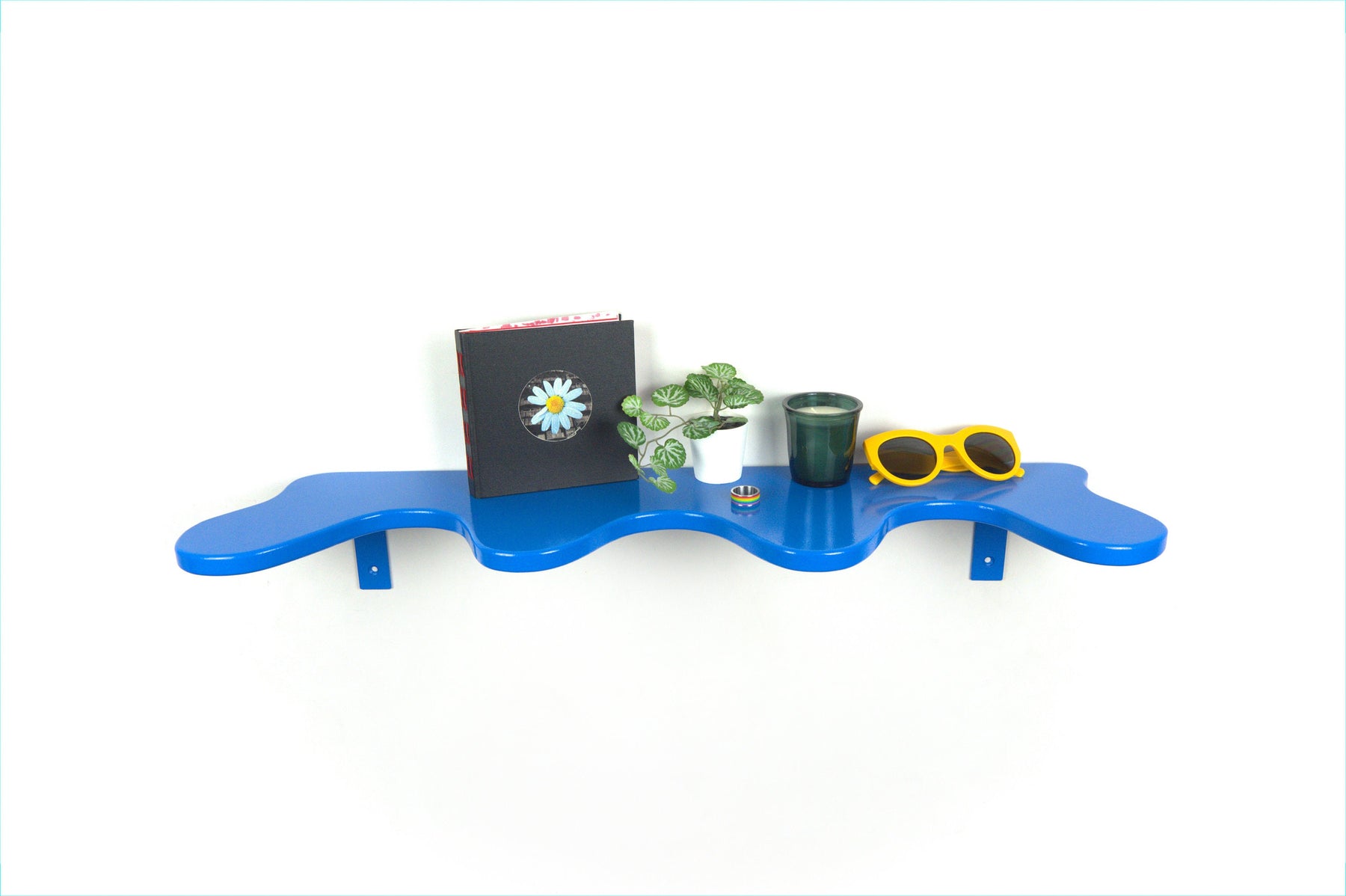 Enhance your home with this calming blue wavy shelf. Perfect for displaying your favorite decor pieces, this shelf is sure to add a touch of style and charm to any room!