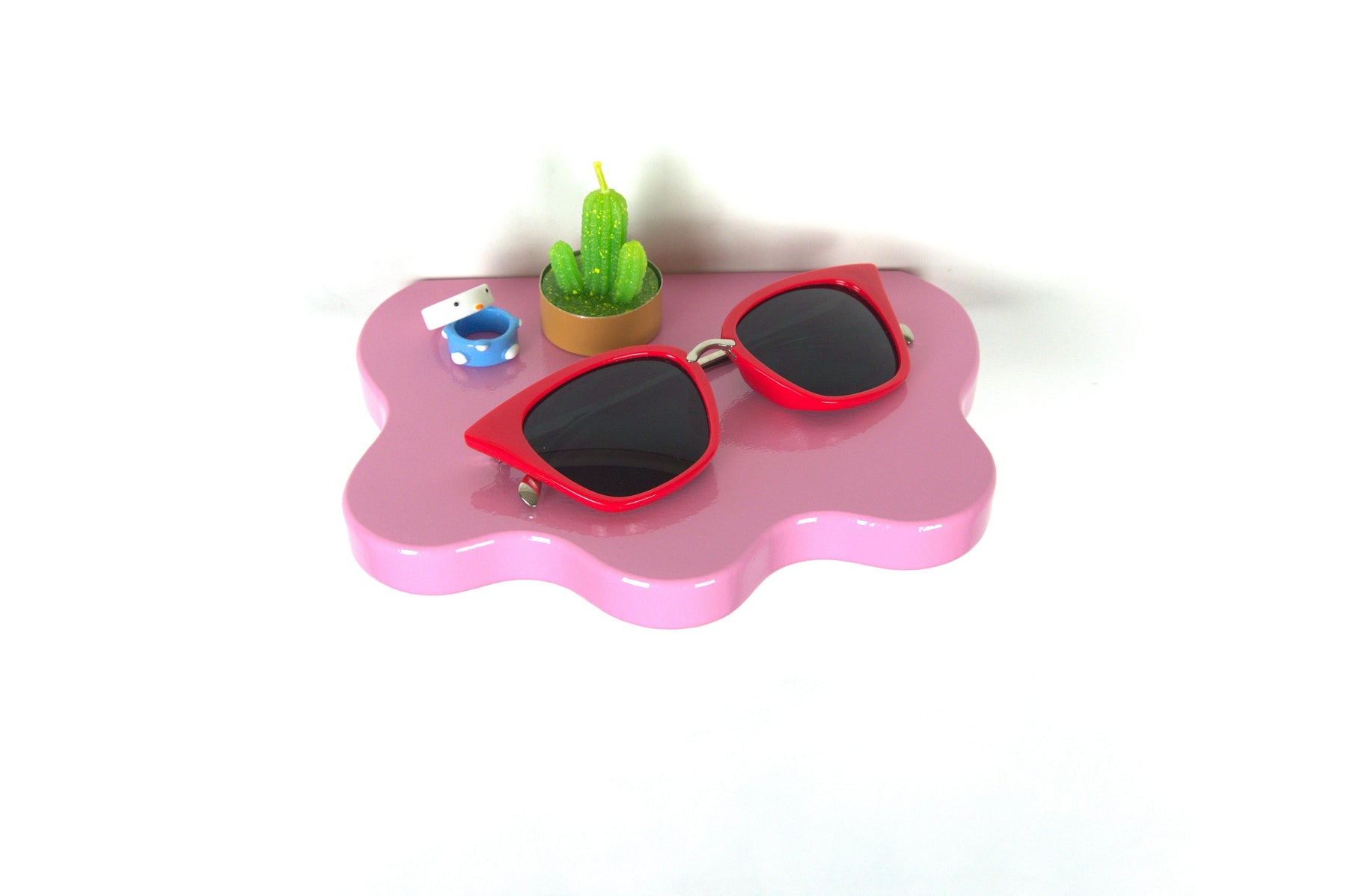 Add a touch of whimsy and fun to your home with this wavy pastel pink shelf, perfect for displaying your favorite accessories, plants, or other decorative items!