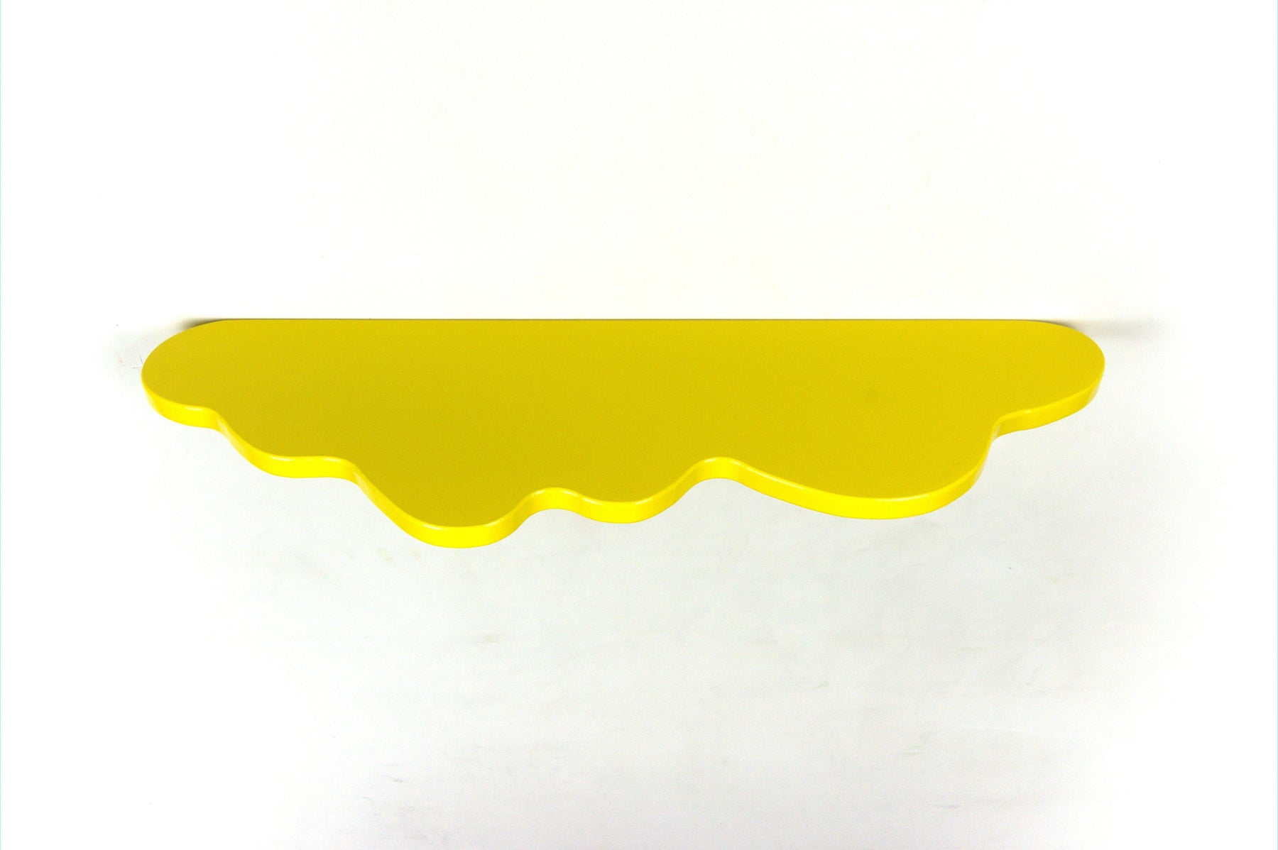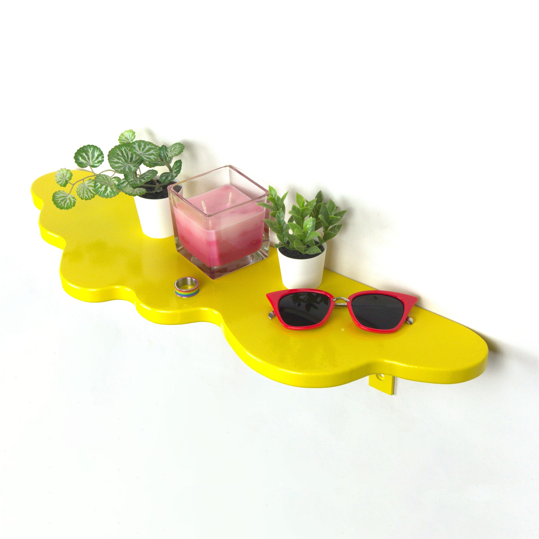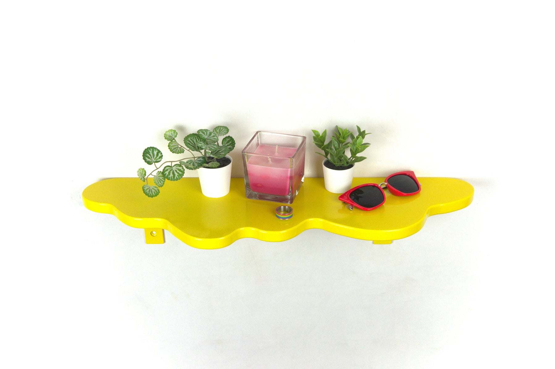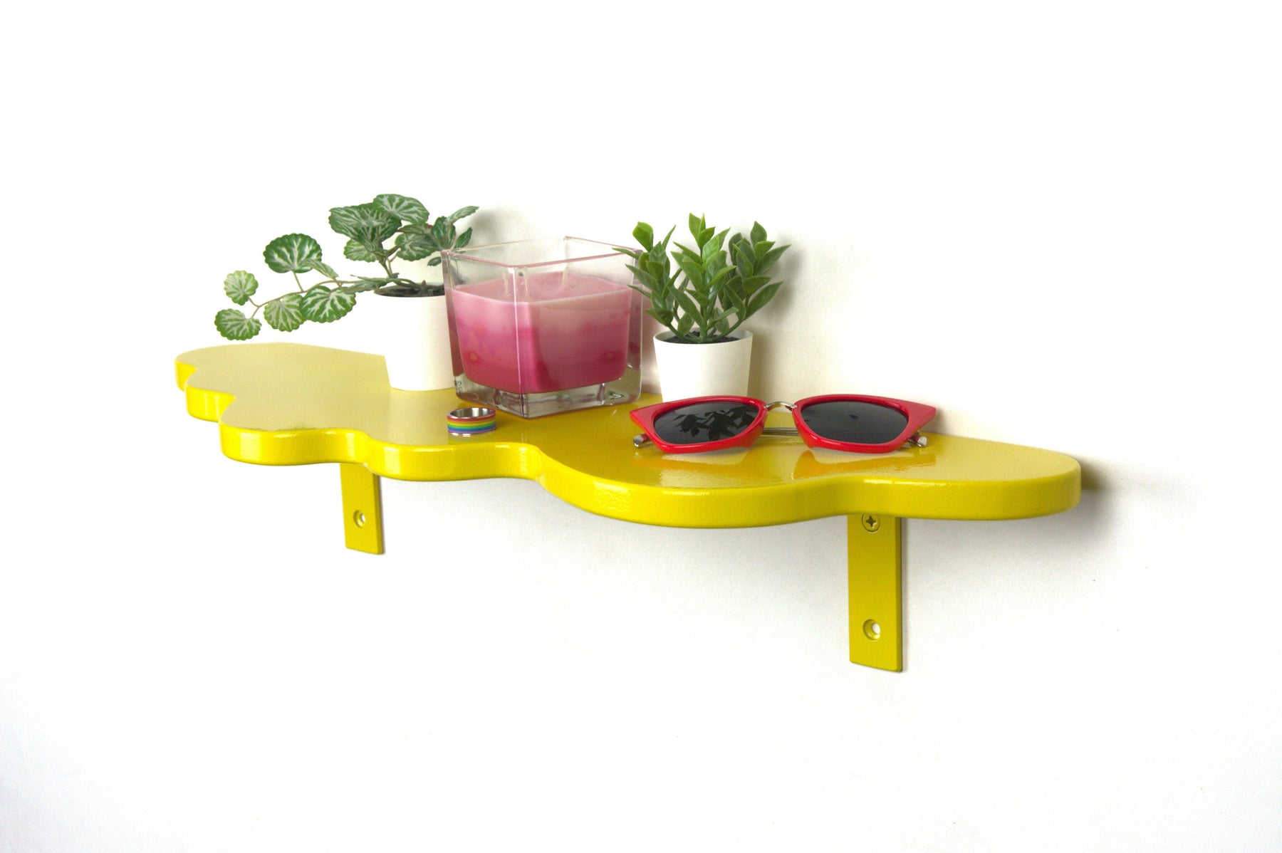 Add a touch of sunshine to your home with our yellow wall mounted shelf. This handmade floating shelf is perfect for displaying plants, books, or other decorative items. It's sure to brighten up any room!